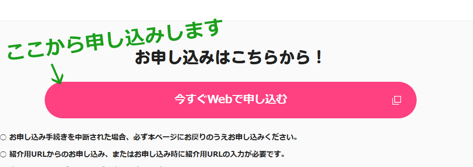 公式サイトにアクセスしたら、少し下の方にある「今すぐWebで申し込む」 をクリックして申し込みを開始します。