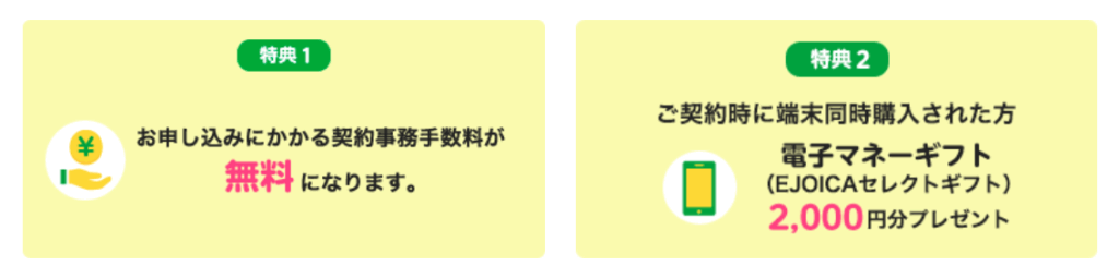 → 通常 3,300円の初期費用が完全にゼロ - 端末同時購入で電子マネーギフト(2,000円分)