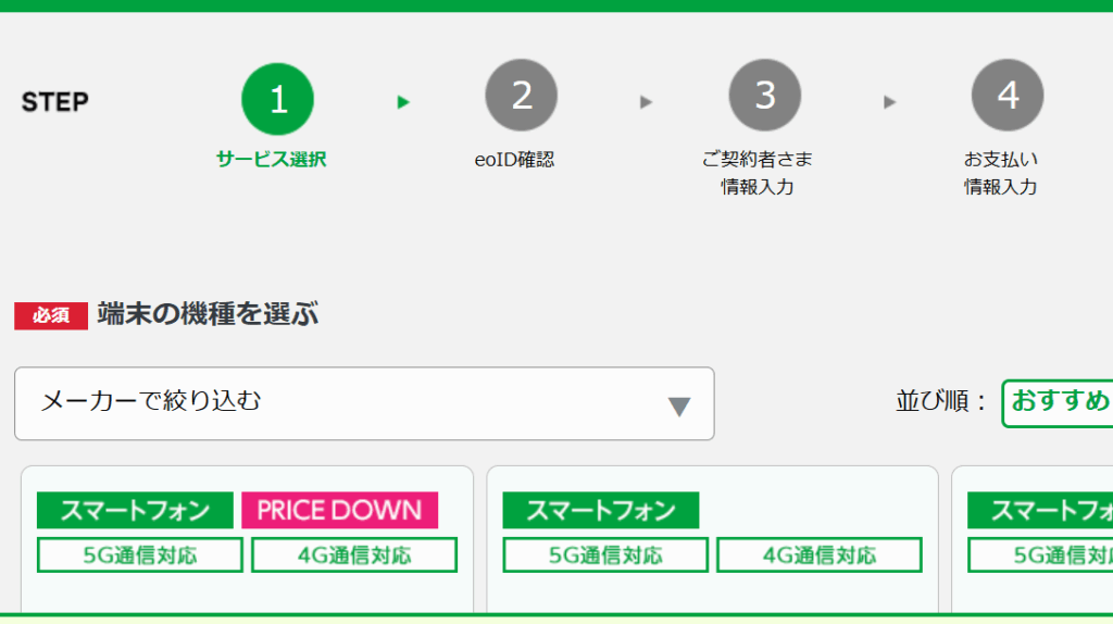 端末購入の方はこういった画面で↑申し込みを行います。